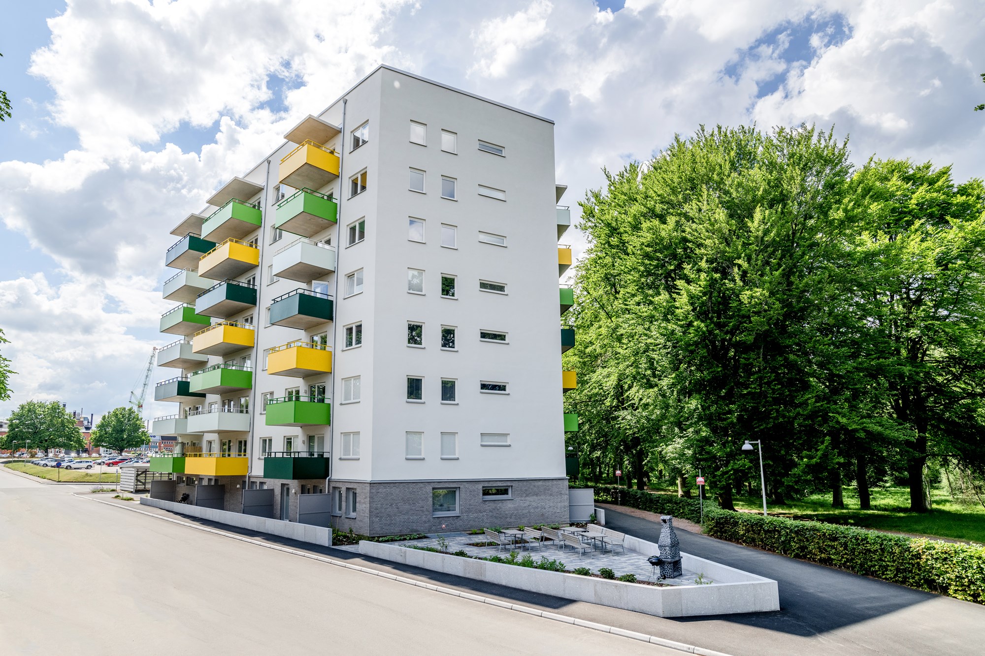 Nybyggnad av flerbostadshus med totalt 50 lägenheter. Byggnaden består av 8 våningar och lägenheterna fördelar sig mellan 1.r.ok och 4.r.ok. Kvarteret ligger centralt vid Boulognerskogen i Skövde.